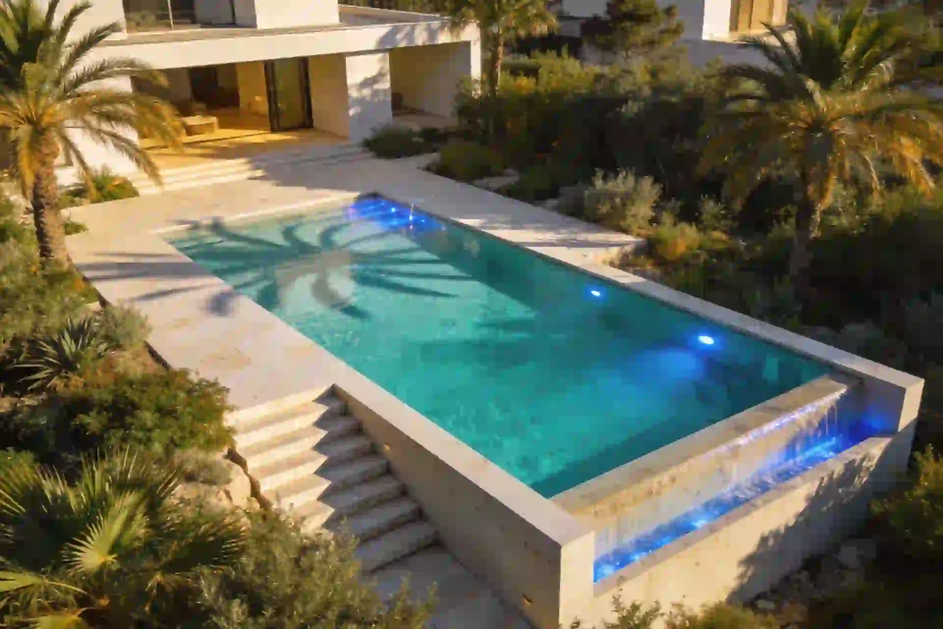Une piscine en dur peut accueillir des systèmes sophistiqués : pompes à chaleur pour chauffer l’eau efficacement, filtration haute performance, nettoyage automatique intégré, éclairage sous-marin, cascades, jets d’eau et même des petits spas hydromassants. L’installation de ces équipements lors de la construction garantit une intégration parfaite, sans compromettre l’étanchéité du bassin. Nous assurons le raccordement hydraulique et électrique complet, ainsi que la formation à l’utilisation et l’entretien régulier.